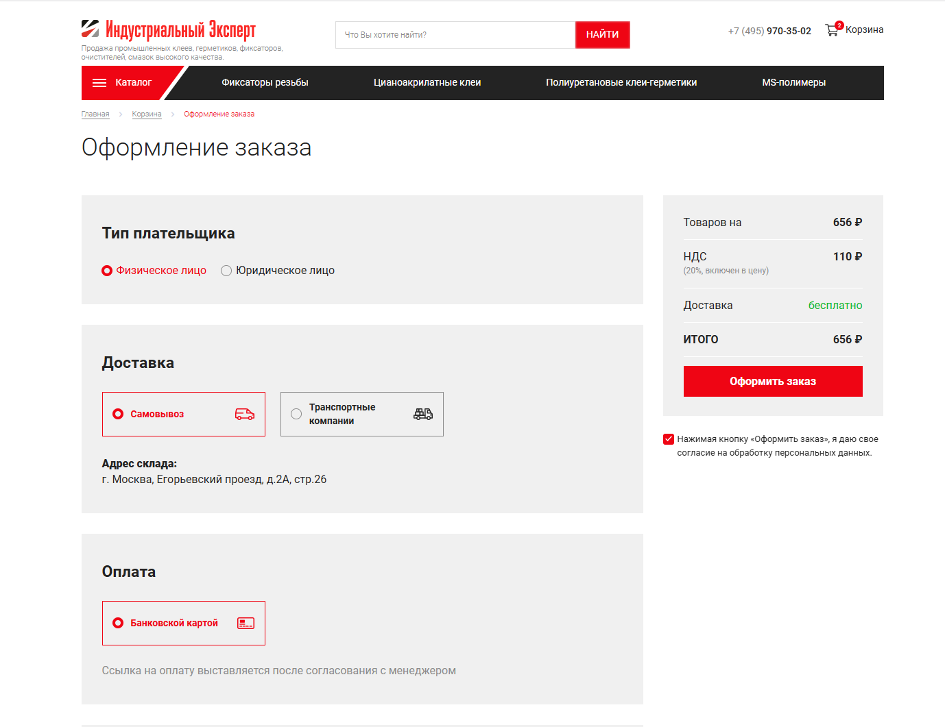 Использована CMS 1С-Битрикс – надежное решение для интеграции с 1С, управления большим каталогом и сложной бизнес-логикой.